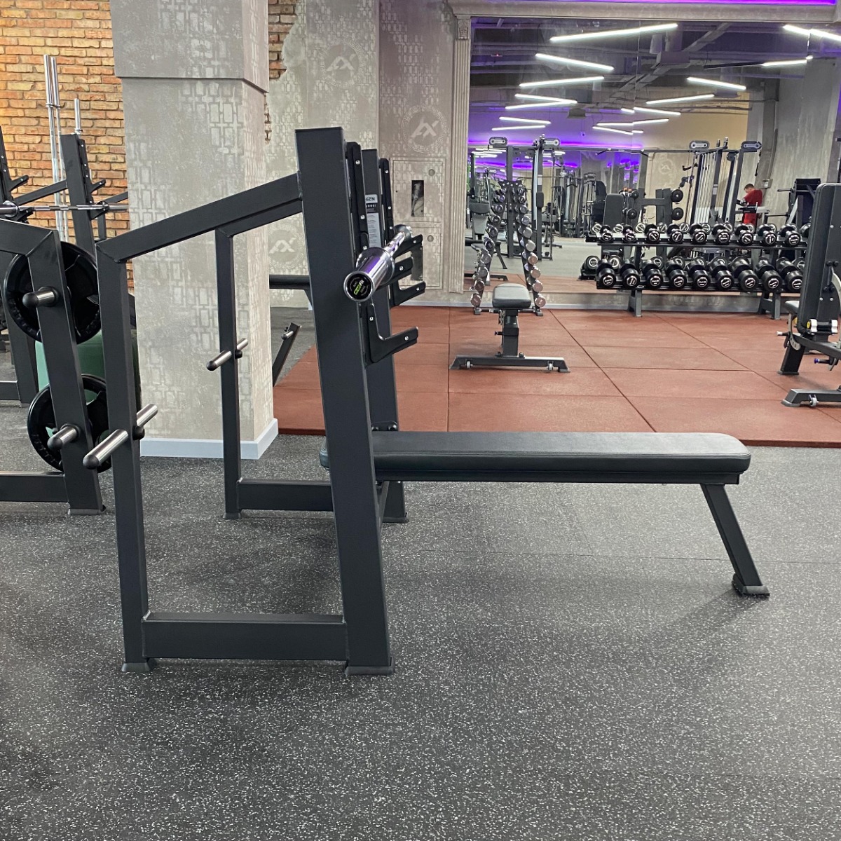 Скамья горизонтальная, классической формы, предназначена для выполнения жима лёжа со штангой.