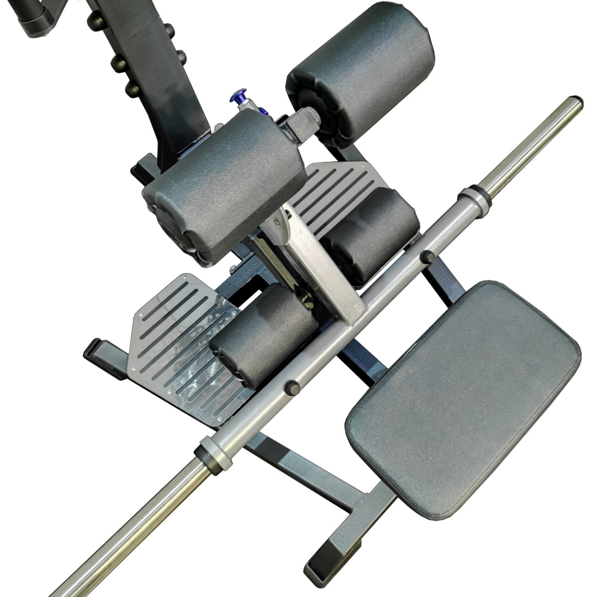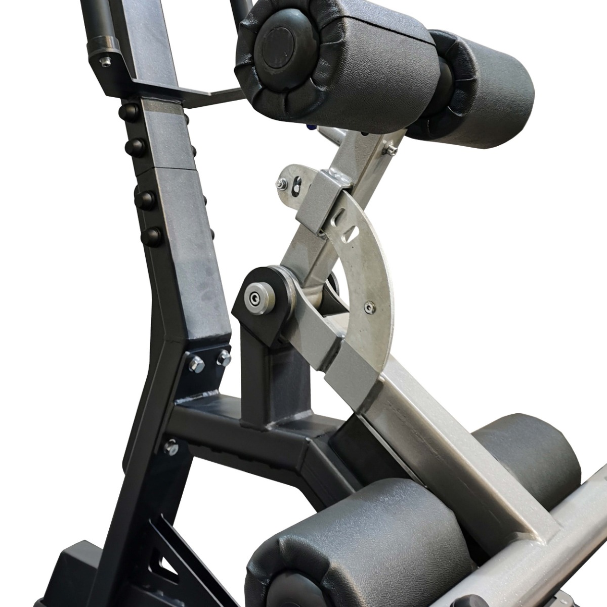 Длина и высота подушек под колени регулируется в пяти положениях, что позволяет адаптировать тренажёр под пользователей различного роста и телосложения. Конструкция фиксатора (стопорный оттяжной механизм) исключает люфты подвижных элементов и обеспечивает плавную настройку положения.