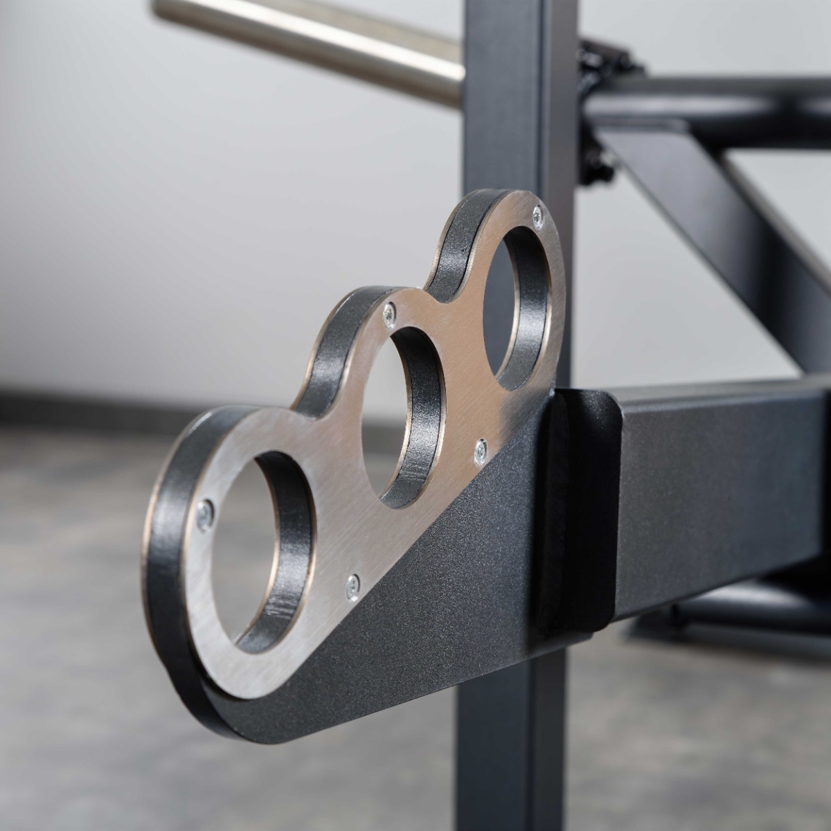 Пара рукояток для опоры во время выполнения упражнения с длиной рабочей области 190 мм и рукоятка на стартовом рычаге с длиной рабочей области 95 мм выполнены из металлического прутка с неабсорбирующим влагу покрытием. Рукоятки оснащены заглушками, зафиксированными болтами.