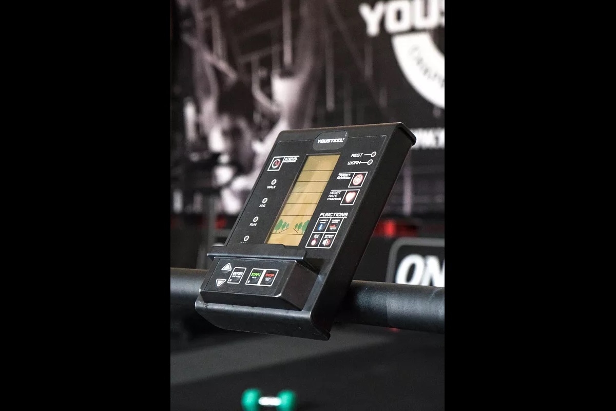 На панели управления есть быстрые кнопки для настройки программ тренировки, подключения Bluetooth, изменения единиц измерения, разделения на временные интервалы и включения/выключения динамика. Тренажёр имеет улучшенную биомеханику, которая позволяет сжигать до 30% больше калорий, чем на обычной дорожке. Это помогает улучшить результаты тренировок и укрепить мышцы. Кроме того, конструкция тренажёра обеспечивает поглощение вредных ударов в суставах во время занятий. Тренажёр также подходит для функциональных групповых тренировок.