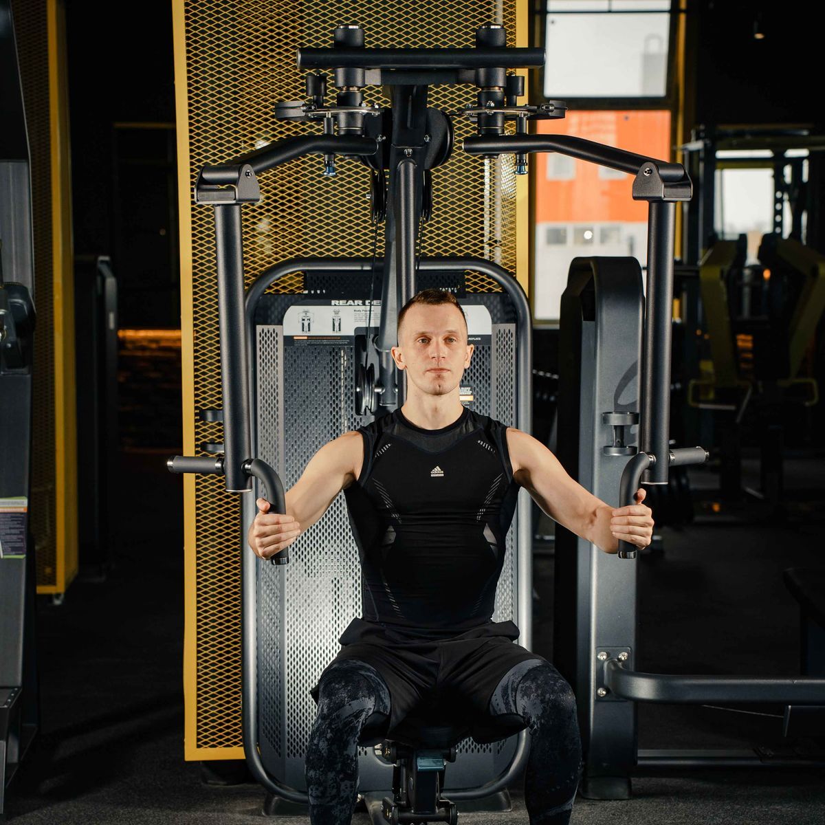 Комбинированный профессиональный тренажер для коммерческого использования E7007 Баттерфляй – задние дельты предназначен для изолирующих упражнений на большие грудные мышцы и задние дельтовидные мышцы.