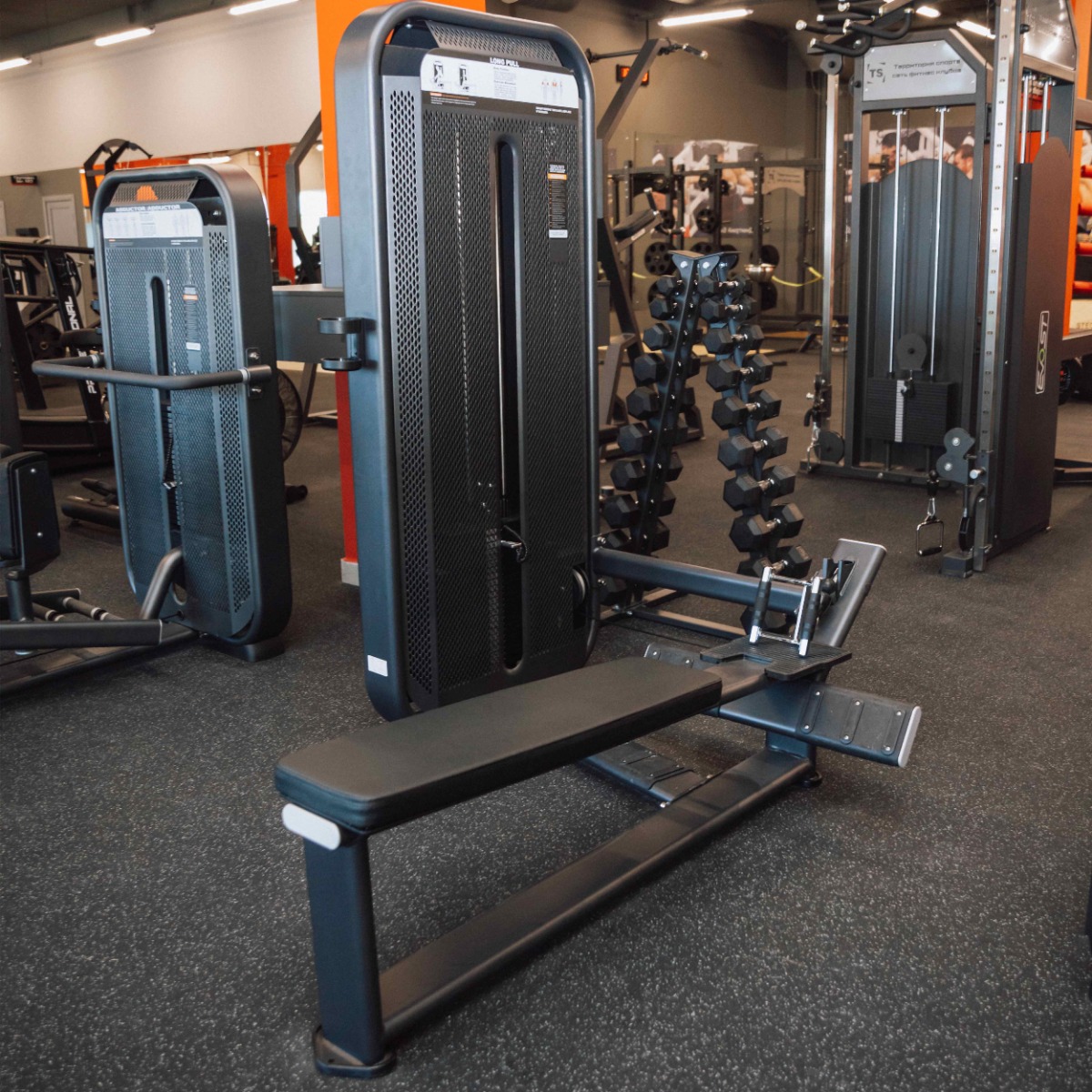 Профессиональный тренажер для коммерческого использования E7033 Гребная тяга. Горизонтальный блок предназначен для изолирующих упражнений на широчайшие мышцы спины, бицепсы, дельтовидные и трапециевидные мышцы.