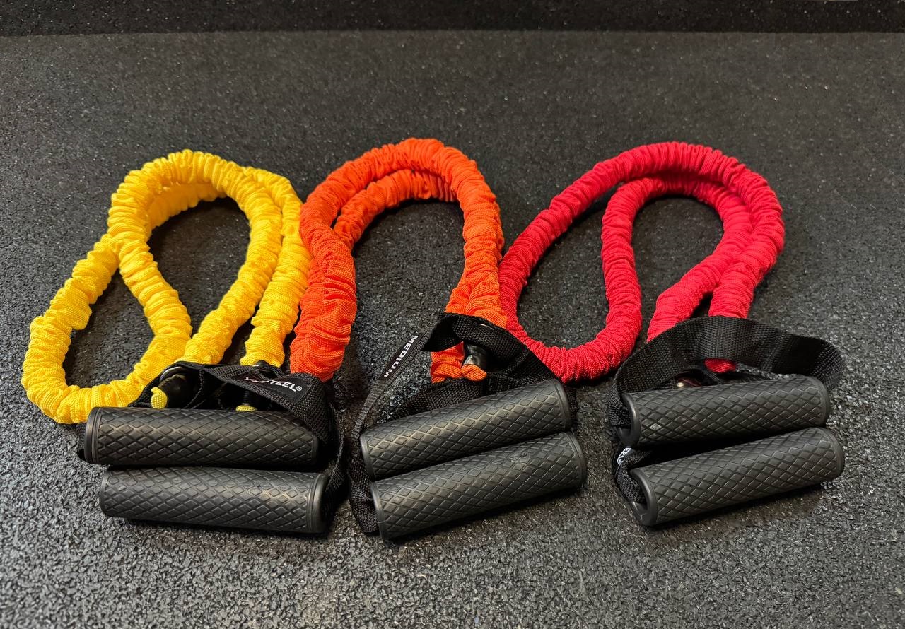 Избегайте абразивных поверхностей, чтобы предотвратить повреждение кожуха эспандеров и продлить срок их службы. Проверяйте изделие на целостность и не используйте во время тренировок эспандеры с надрывами/разрывами. Храните эспандеры в прохладном темном месте, не подвергайте воздействию влажности и прямого солнечного света. Не растягивайте снаряд более чем в 2 раза от начальной длины.