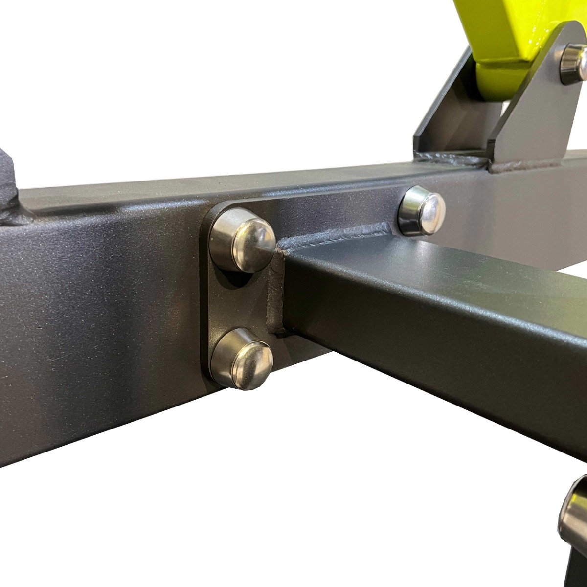 Надёжность и прочность разъёмных соединений конструктивных элементов тренажёра обеспечиваются за счёт использования высококачественного оцинкованного крепежа, выступающие части которого закрыты металлическими защитными колпачками.