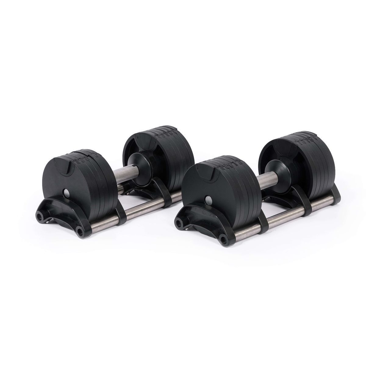 Наборные весовые диски регулируемой гантели выполнены из стали с чугунным покрытием.