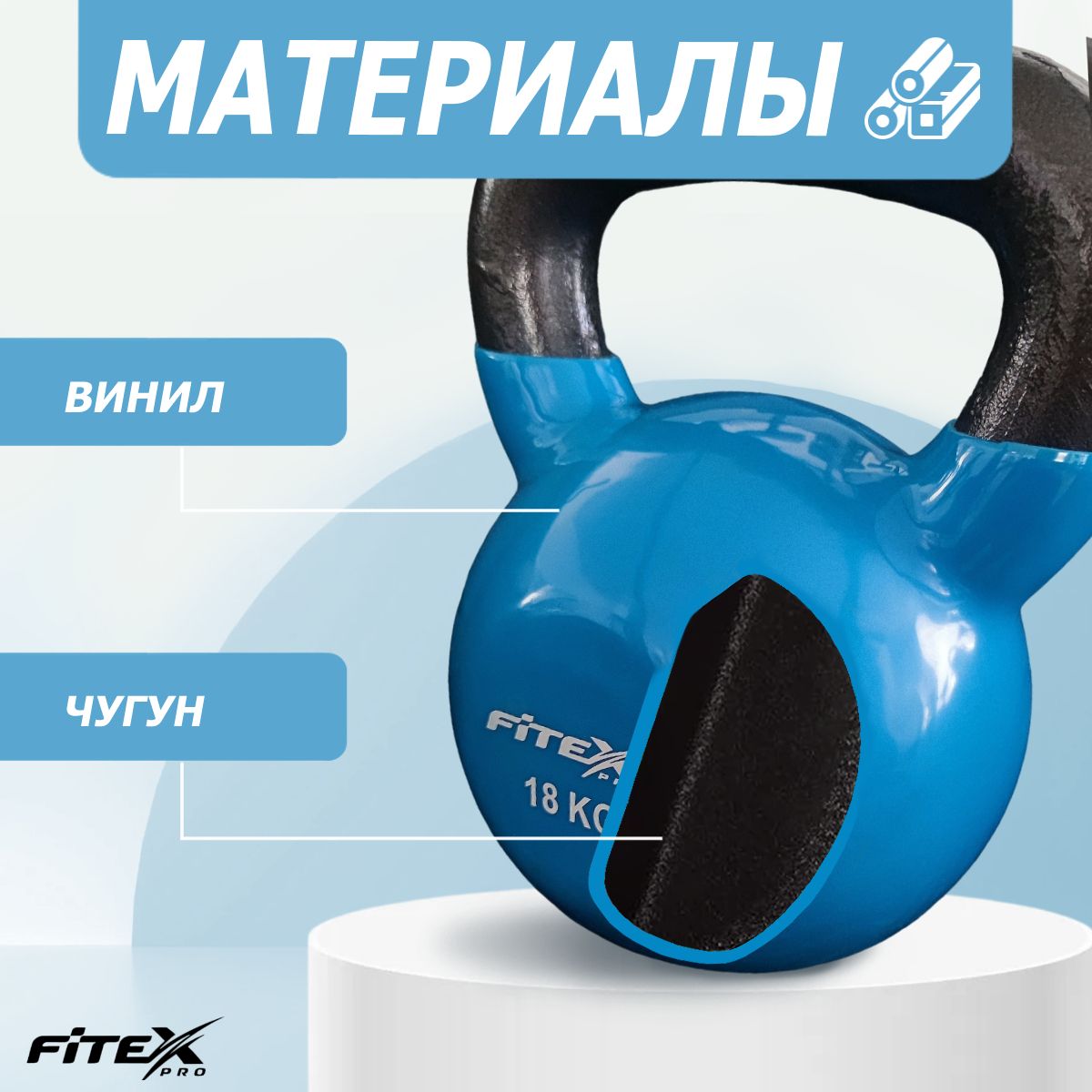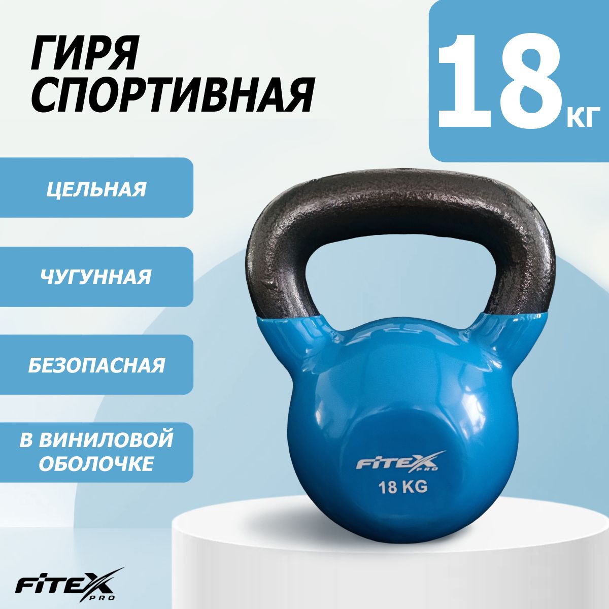 Гиря FITEX PRO сделана из чугуна и имеет плотное виниловое покрытие, которое не окрашивает стены и пол, снизит шум и убережет кожу рук от раздражения.