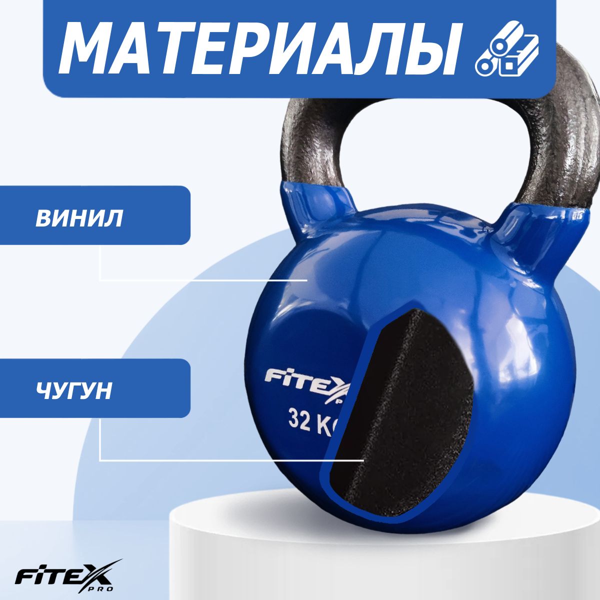 Гиря FITEX PRO сделана из чугуна и имеет плотное виниловое покрытие, которое не окрашивает стены и пол, снизит шум и убережет кожу рук от раздражения.