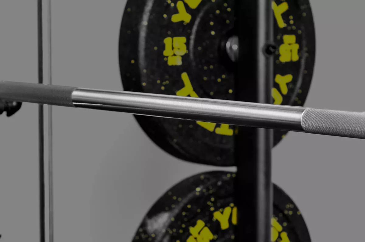 Снаряд имеет вес 15кг. Рукоять грифа покрыта хромом и изготовлена из специальной стали, обладающей высокой прочностью на разрыв в 250k PSI. Гриф имеет отличную упругость, а гибридная насечка обеспечит надежный хват. Нанесены метки IWF и IPL. Внутри втулок десять игольчатых подшипников, которые гарантируют плавное вращать диски даже при самых высоких нагрузках.