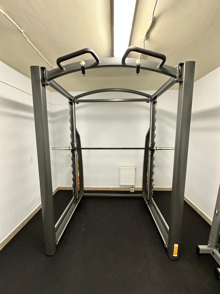FTX-7333A Машина Смита — это силовой тренажёр, в котором штанга закреплена на стальных направляющих и может двигаться только вертикально или под небольшим наклоном. Это позволяет выполнять упражнения с фиксированной траекторией движения, что упрощает технику и снижает риск травм. Он относится к серии Status и рассчитан на коммерческое использование. Тренажер обеспечивает стабильность и безопасность при тренировках.