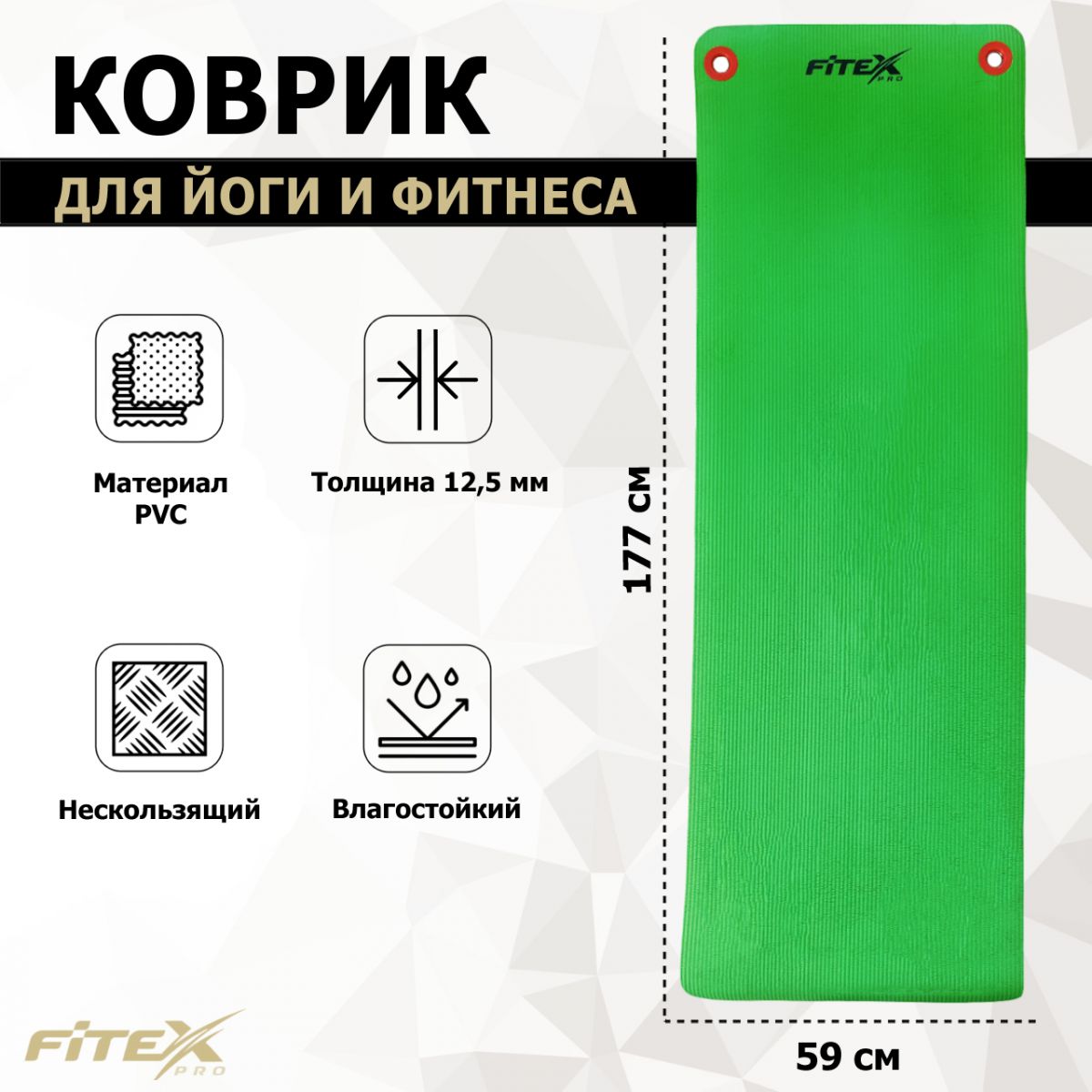 Мат гимнастический 180х60х1.25 см FITEX PRO изготовлен из вспененного материала поливинилхлорида.