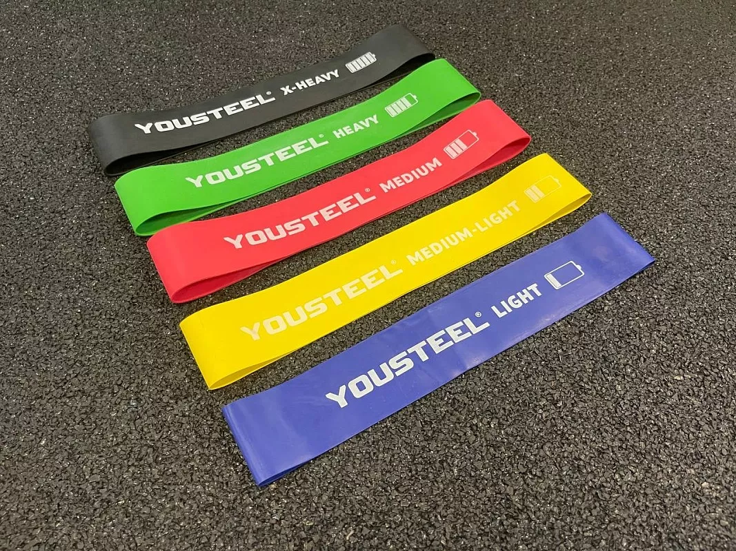 Набор резиновых петель размером 60х500 мм с разным уровнем нагрузки (от легкого к тяжелому) отлично подходит для различных физических упражнений.