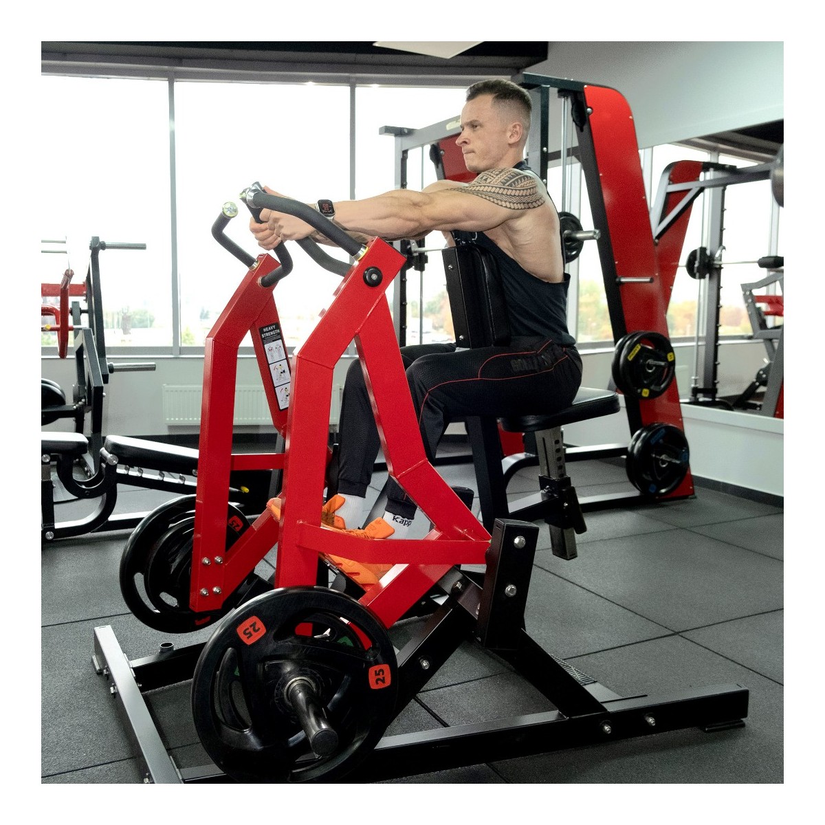 Область применения: Профессиональная;Форма сечения рамы: Прямоугольная|Квадратная;Толщина стенки рамы: 3 мм;Диаметр втулки для дисков: 50 мм;Размеры тренажера: 150 × 145 × 134 смВес тренажера: 165 кг