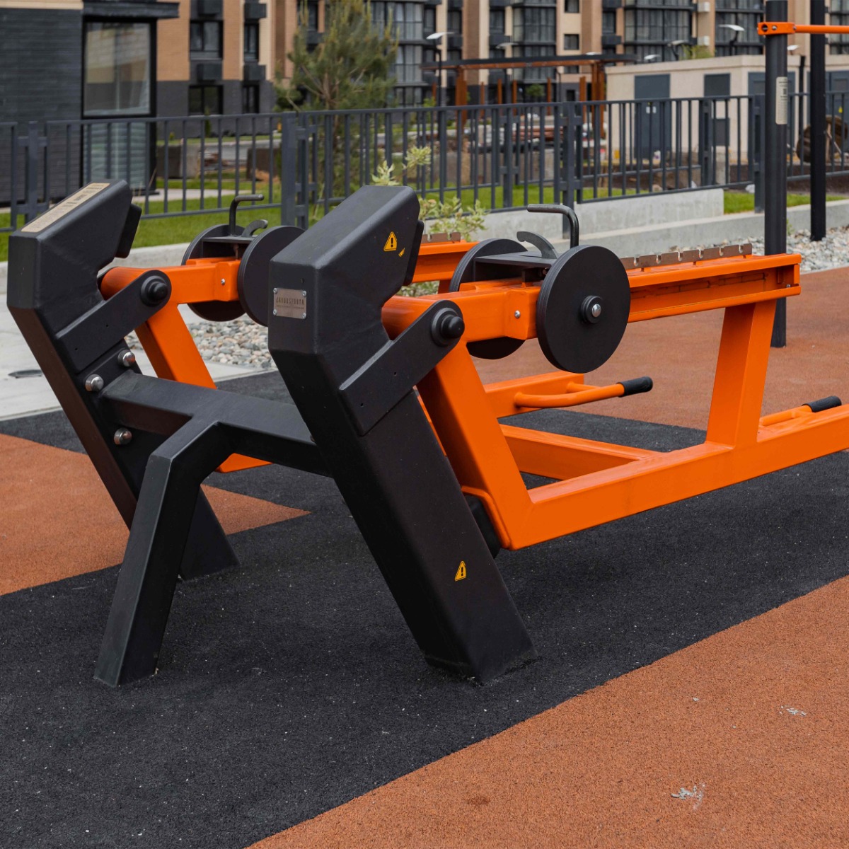 Надёжность и прочность разъёмных соединений конструктивных элементов тренажёра обеспечиваются за счёт использования высококачественного оцинкованного крепежа, выступающие части которого закрыты металлическими защитными колпачками.