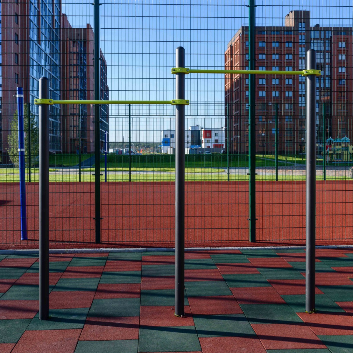 Уличные перекладины разноуровневые (два уровня) для подтягивания из виса на высокой перекладине ZAVODSPORTA* предназначена для установки на уличных спортивных площадках с учетом интенсивной эксплуатации в разных климатических условиях.