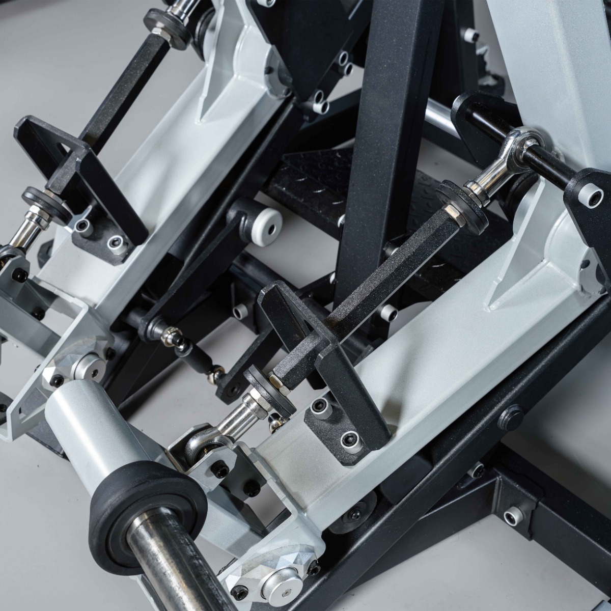 Основание выполнено из стального прямоугольного профиля 80×55 и 120×60. При изготовлении тренажера использован металл толщиной 4 мм для максимальной структурной прочности. Изготовлено на высокоточном лазерном оборудовании с ЧПУ.